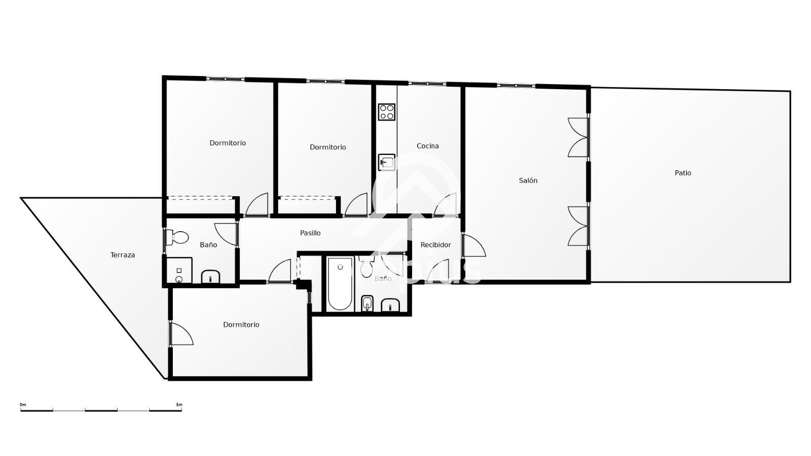 El amplio salón, con salida directa a una agradable terraza privada, se convierte en el corazón de la vivienda: un espacio perfecto para relajarse o compartir momentos. Dispone además de tres dormitorios de buen tamaño, todos con armarios empotrados, y dos baños completos.